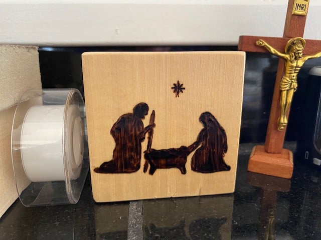 Prepare to celebrate the coming of our Savior with this simple basswood block.